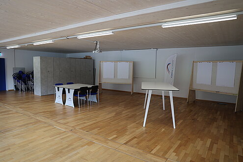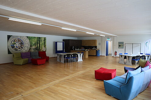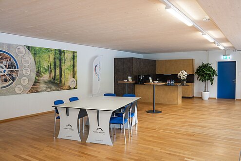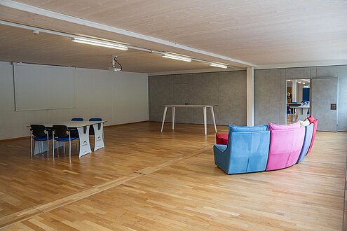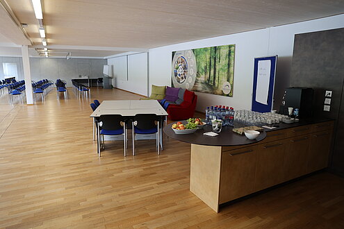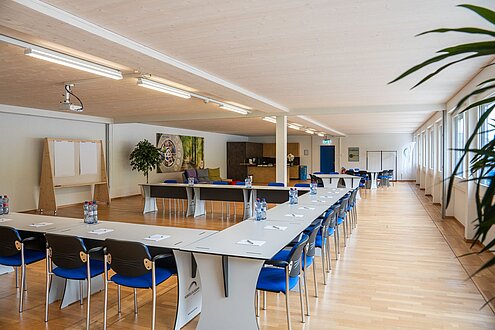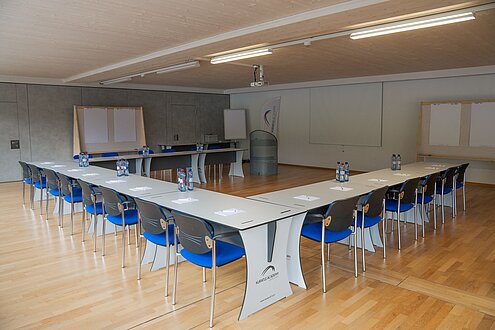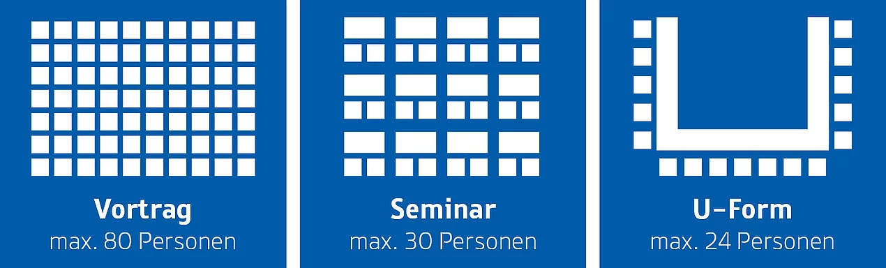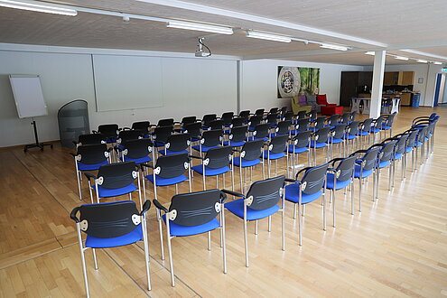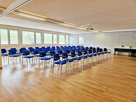 Der Schulungsraum hat Platz für 80 Personen und kann unterschiedlich bestuhlt werden.