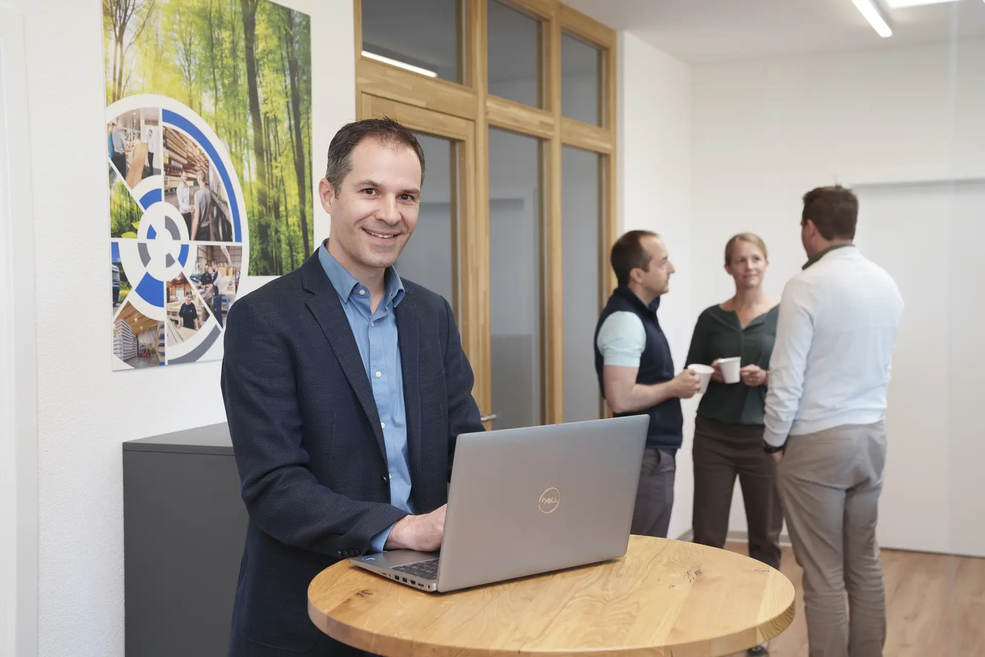 Als Sortimentsleiter Innenausbau und Boden verantwortet Dominik das Sortiment für unsere Schreiner- und Bodenlegerkunden. Konkret bedeutet dies: die Bereitstellung der passenden Verkaufsunterlagen für unsere Verkaufsteams, die Sicherstellung der Verfügbarkeit von Produkten und Dienstleistungen durch optimale Belagerung sowie die Ausrichtung des Produktsortiments am aktuellen Marktbedürfnis. Ebenfalls ist er für die Preisfestsetzung seines Sortiments verantwortlich. Auf die Frage, was ihn an seiner Tätigkeit besonders inspiriert, antwortet Dominik ohne lange zu zögern, dass ihn die Evaluierung und die anschliessende Einführung neuer Produkte und Sortimentslinien jeden Tag aufs Neue motiviert.