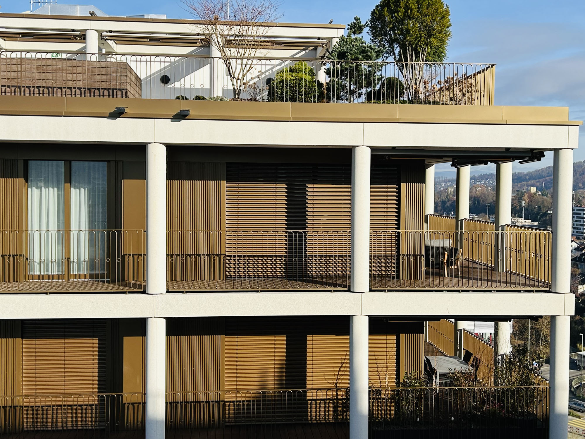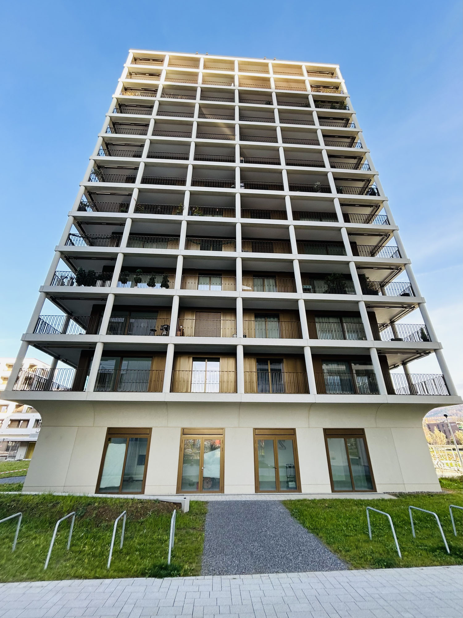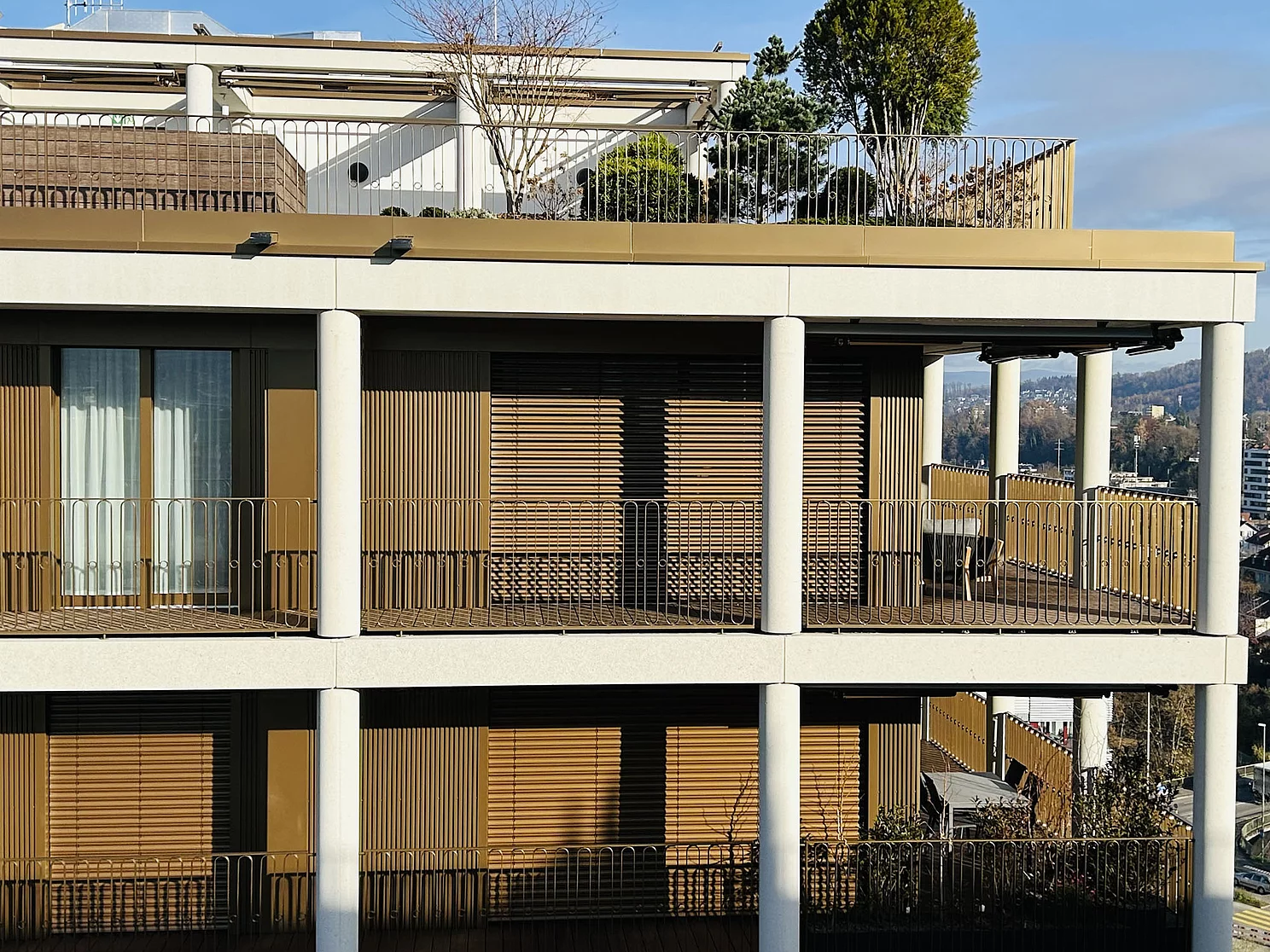 In the south of Basel, on the Reinacher Heide, there used to be a conveniently located industrial area. The so-called Stöcklin Areal connected the municipalities of Reinach and Aesch. The Aere project has now created a residential and commercial quarter in this attractive location (construction phase: September 2022 to November 2024). Curious: the border between Reinach and Aesch now runs right through the middle of the new housing estate.