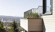 Les travaux n'en ont pas été affectés, comme le rapporte Toni Fleischmann, directeur de la société Fleischmann Holzbau AG, en charge du projet. Il avait recommandé de l’épicéa du Nord pour le bardage de la façade ventilée. À ses yeux, cette essence s'accordait parfaitement avec le traitement de surface souhaité. La qualité est de toute façon essentielle : « Nous recommandons à tous nos clients de choisir au minimum une qualité N1. »