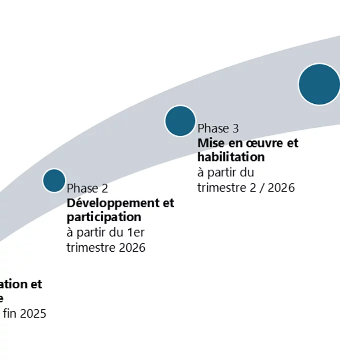 Phase 1 – Orientation et analyse (jusqu'à fin 2025): Nous analysons nos forces, nos faiblesses, nos opportunités et nos risques. Nous définissons des processus de bout en bout, les examinons et vérifions notre organisation. De cette manière, nous construisons des fondations solides.