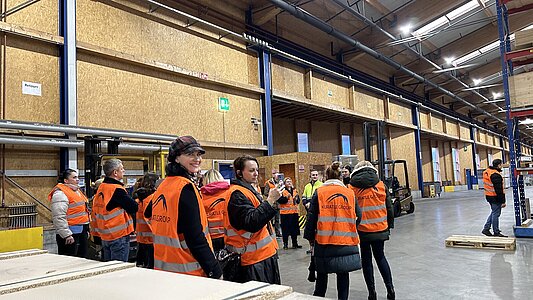 Bei allen Führungen und Referaten fiel auf: Das rege Interesse an der Holzwirtschaft zeigten die Studierenden den ganzen Tag lang in zahlreichen Fragen. In welche Länder liefern unsere Handelsgesellschaften schwerpunktmässig? Woraus sind die einzelnen Produkte und Materialien zusammengesetzt? Die praxisnahen Vorträge brachten die Antworten. Zum Abschluss entwickelten die Teilnehmenden in einem Workshop unter Leitung von Corinne Kuratle ein mögliches Marktsystem für die ukrainische Holzwirtschaft. Schönes Highlight: Bevor die Gruppe Niederbipp verliess, besuchte George Kuratle die Veranstaltung und fand sich zu einem Gruppenbild ein.