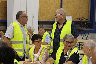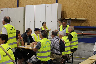 Der Tag begann gegen 9 Uhr mit dem Eintreffen der ersten Teilnehmenden. In der Halle 1 wurde den ehemaligen Mitarbeitenden Kaffee und Gipfeli serviert. George Kuratle, Verwaltungsratspräsident, und Roger Kuratle, CEO der Kuratle Group, begrüssten die Anwesenden herzlich. Nach dem gemütlichen Austausch über die früheren Zeiten bei der Kuratle Group bei Kaffee und Gipfeli dankten George und Roger den Gästen für ihr zahlreiches Erscheinen und informierten über das geplante Tagesprogramm. Alle Teilnehmenden wurden zudem aufgefordert, zu schätzen, wie viel sie zusammen wiegen und die geschätzte Zahl auf ihr Namensschild zu schreiben. Wie dieses unterhaltsame Rätselraten ausging – dazu gleich mehr.