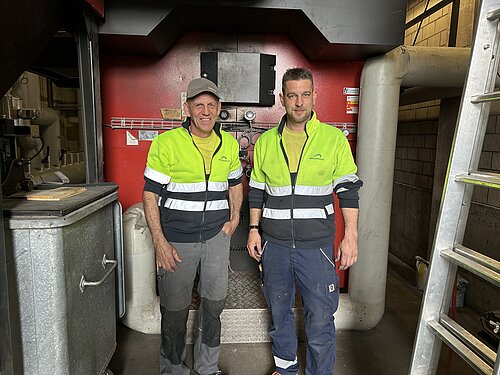 Einen wichtigen Punkt beim Unterhalt nimmt die Hackschnitzelheizung ein. Peter kümmert sich praktisch jeden Tag um die Heizung, die das gesamte Areal in Leibstadt mit Wärme versorgt. An eine Sache denkt man beim Thema Heizung nicht sofort – und das ist die Leimmaschine, die von allen nur «Roberta» genannt wird. Sie ist an den Heizkreislauf angehängt und benötigt eine Heizleistung von mindestens 60° Celsius. Deshalb musssichergestellt sein, dass die Maschine mit ausreichend Wärme versorgt wird. Ausserdem lässt sich an der Maschine als Allererstes erkennen, wenn mal mit der Heizung etwas nicht stimmen sollte. Doch bei unseren Profis aus dem Bereich Werkstatt + Unterhalt ist das alles in besten Händen.