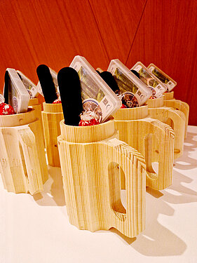 Die Einladung zum Jubiläumsdinner in der Deutsch- und Westschweiz erging an alle Mitarbeitenden, die seit mehr als 15 Jahren in der Unternehmung sind. Der Abend kleidete sich in ein festliches Gewand: Es gab Dankesworte an unsere verdienten Mitarbeitenden und ein feines Essen. Passend zum feierlichen Rahmen wurde den Jubilaren ein edler Kugelschreiber mit ihrem eingravierten Namen überreicht. Hinzu kamen schöne Krüge aus Holz, die in der HTA Mittelland hergestellt wurden.