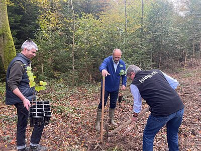 Nach Romont im Kanton Freiburg und Anières im Kanton Genf wurde unsere Baumaktion in der Westschweiz fortgeführt. Aktiv werden war gefragt: Unsere Kunden wie auch unsere Kader und Mitarbeitenden waren aufgefordert, Hand anzulegen und Bäume zu pflanzen.
