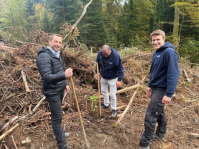 Mit der Pflanzaktion «Mein Baum» unterstützen wir die Aufforstung Schweizer Wälder nachhaltig. Die von uns gespendeten Baumsetzlinge wurden in Zusammenarbeit mit regionalen Förstern passend ausgesucht und standortgerecht gepflanzt. Fortschritte zum Wachstum der Setzlinge und den dadurch aufgeforsteten Waldbestand begleiten wir in den nächsten Jahren aktiv.