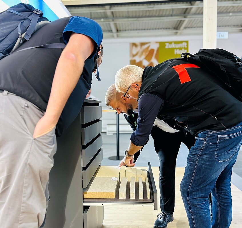 Unsere Welt ist voll mit Bildern. Und hinter so manchem Bild verbirgt sich in Wahrheit der Werkstoff Holz. Diese Erfahrung konnten die Besuchenden auf der grandiosen Ausstellungsfläche von Kuratle & Jaecker machen. Grosse LED-Wände zeigten, was mit Holz möglich ist. Kreative Slogans unterstützen die moderne Bildsprache und leiteten zu den einzelnen Themenwelten über.