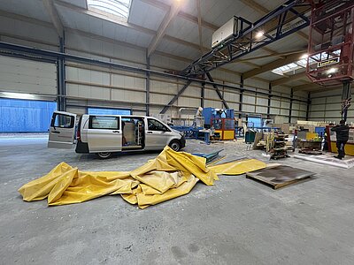 Zum Ein- und Ausbau der Maschinen kommt ein Pneukran zum Einsatz. Um die neue Maschine platzieren zu können, wird die Maschinengrube vergrössert.