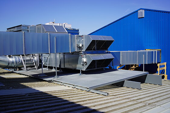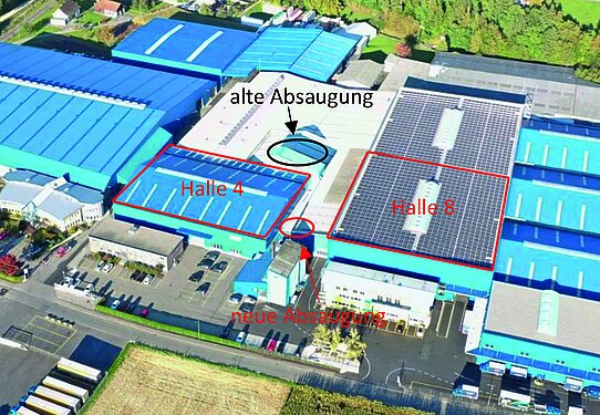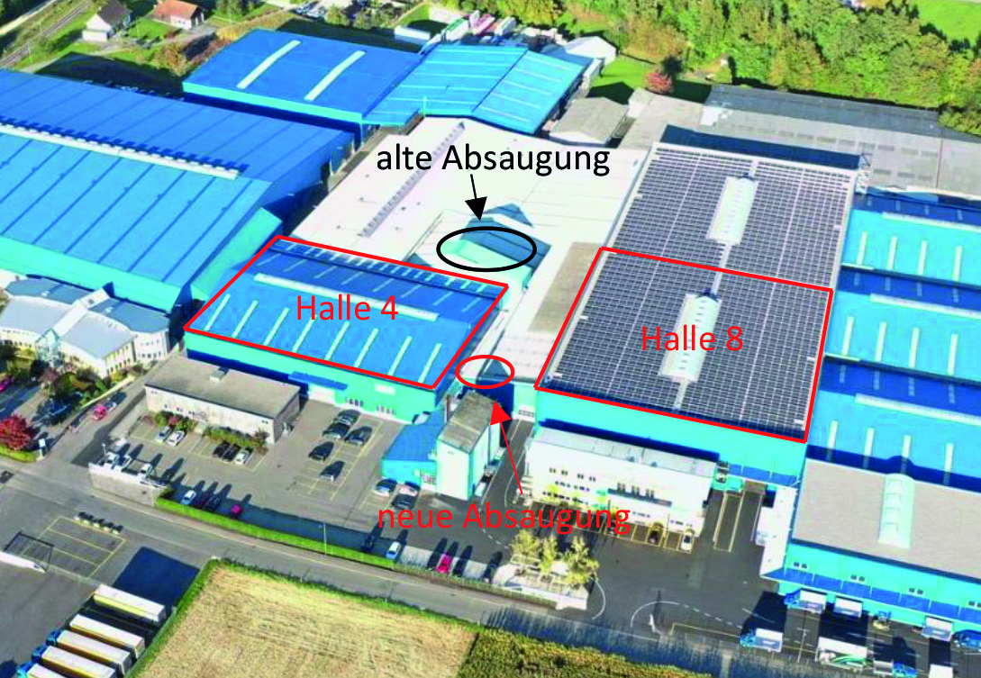 Die in die Jahre gekommene Filteranlage ist stetig mit den neuen Bearbeitungsanlagen mitgewachsen und hat kapazitätstechnisch bereits seit einiger Zeit eine kritische Schwelle erreicht. Sie befindet sich inmitten der alten Hallen des Areals, mit ungünstiger Zugänglichkeit für den Anlagenunterhalt und die Feuerwehr. Nebst der erreichten Kapazitätsgrenze im Bereich der Luftleistung fordern auch die Brandschutzvorschriften und die Energieeffizienz eine Modernisierung in der Absaugtechnik. Durch den Neubau der Halle 8 im Jahre 2021 und der damit verbundenen Klarheit, wie und wo das Bearbeitungs- und Zuschnittzentrum (BUZ) in Zukunft produzieren wird, konnte die konkrete Planung der neuen zentralen Absauganlage in Angriff genommen werden.