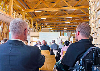 Jakob Stark, Ständerat des Kantons Thurgau und Präsident von Lignum, Holzwirtschaft Schweiz, überbrachte ebenfalls ein Grusswort in Märstetten. Er machte sich für zwei Ziele stark: Mehr Holz verbauen – und zwar vor allem Holz aus Schweizer Wäldern – und mehr auf eine Kaskadennutzung setzen, um CO2 zu speichern. Denn Holz im Bau sei die beste Klimamassnahme, die es gebe.