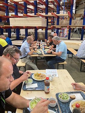 Im Rahmen der «CEO on Tour» war auch Roger Kuratle vor Ort und nahm am Mittagessen der Mitarbeitenden der Meier Logistik teil. Er nutzte diese Gelegenheit, um sich in einer entspannten und persönlichen Atmosphäre mit allen auszutauschen.