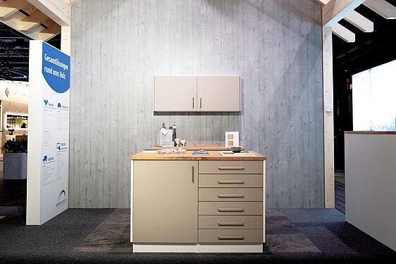 Der Messestand in Form eines Hauses war eine Weiterentwicklung des letztmaligen Standes und liess sich von allen Seiten begehen. «Unsere Idee war, dass die Kunden einmal rundum laufen können, damit sie alle Themenwelten in wohnlicher Atmosphäre erleben können», erläutert Raphael Forster aus dem Projektteam von Kuratle & Jaecker. Ein Konzept, das voll aufging, sodass ein positives Fazit der Swissbau 2026 gezogen werden kann.
