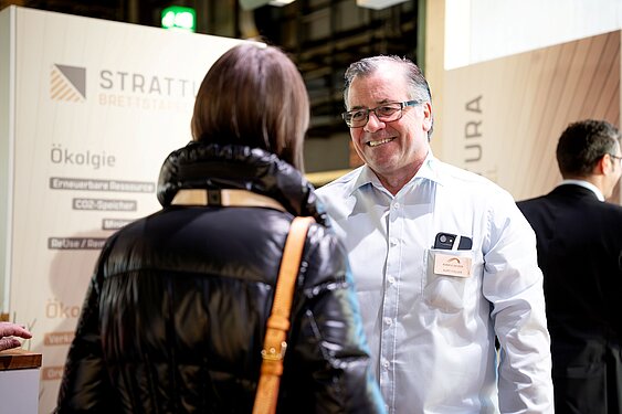 Die Deckenelemente Strattura ergänzten das Sortiment und wurden im konstruktiven Aufbau direkt am Beispiel gezeigt. An der Aussenseite des Messestandes war – ähnlich wie schon bei der Holz 2025 – das Sortiment unseres starken Partners Novatop zu sehen.