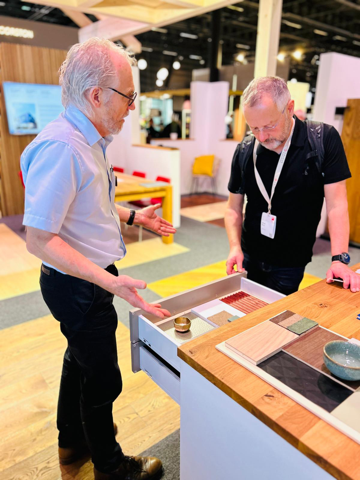 Ticinoro steht für Luxusböden nach Mass in allen verfügbaren Holzarten und freute sich über sehr gute Gespräche. Die Zielgruppe für Ticinoro war an der Swissbau gegeben. Kuratle & Jaecker sprach dank Sortiment und Dienstleistungen ganz unterschiedliche Zielgruppen an: Neben verarbeitenden Betrieben suchten auch häufig Architekten und Endkunden das Gespräch mit unserem Fachpersonal am Stand.