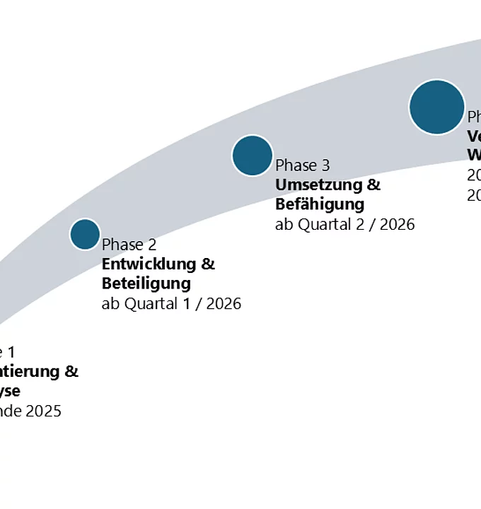 Phase 2 – Entwicklung & Beteiligung (Q1 / 2026): Die neue Strategie wird vorgestellt. Transparenz ist uns wichtig – alle Mitarbeitenden werden informiert und einbezogen, damit alle die Schritte nachvollziehen können.