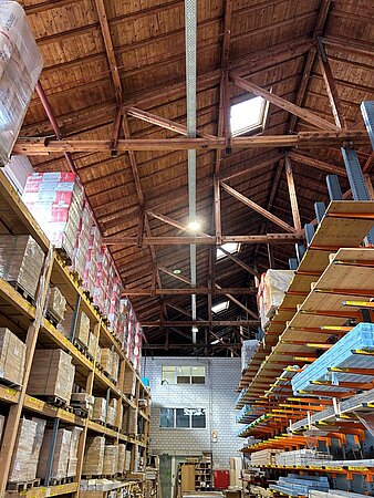 Bei der Meier Logistik kümmern sich acht Mitarbeiter um die belagerten Artikel (fünf um die LKWs, einer ums Abhollager, zwei Chaffeure sind «on the Road»). Zwei LKW liefern täglich aus. Umgekehrt bezieht unser südwestlichster deutschsprachiger Standort Ware von verschiedenen Standorten. Jeden Tag kommen LKW aus Leibstadt, Füllinsdorf und Farvagny-le-Petit, dreimal die Woche aus Niederbipp. «Bern hat mit rund 20 Kunden täglich eines der grössten Abhollager der Meier Logistik in der Schweiz», sagt Thomas. Die Hallen sind weitläufig und werden saisonal flexibel angemietet. Ein Raum wird extra beheizt, weil hier Holzflüssigkeiten wie Lacke oder die Produkte von RubioMonocoat stehen.