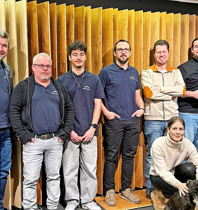 Im zum Teil zweisprachigen Verkaufsteam oberhalb der Büros von Geschäftsführer Stefan Jungo und Assistentin Sabrina Niederfriniger ist der Holzbau mit vier Mitarbeitenden am stärksten vertreten, drei Mitarbeitende übernehmen den Innenausbau, zwei den beratungsintensiven Bodenbereich und zwei die Türenabteilung.