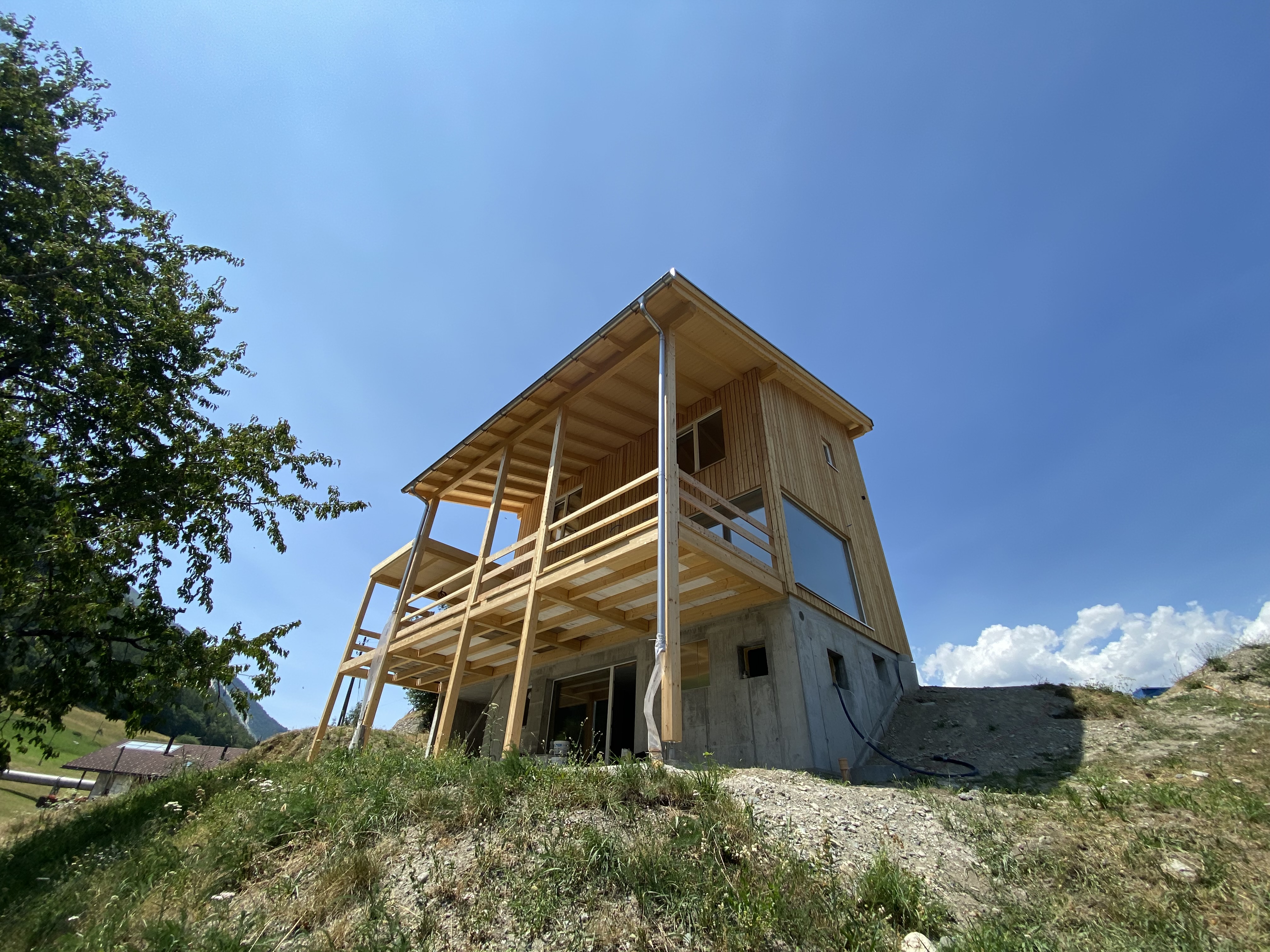 Für das Haus Borter durften wir den Abbund für den Elementbau, so wie für die sichtbare Dachkonstruktion und die Terrassen ausführen. Zudem haben wir bei der Konstruktion für die Terrassen bei uns im Werk die Sherpas vormontiert.