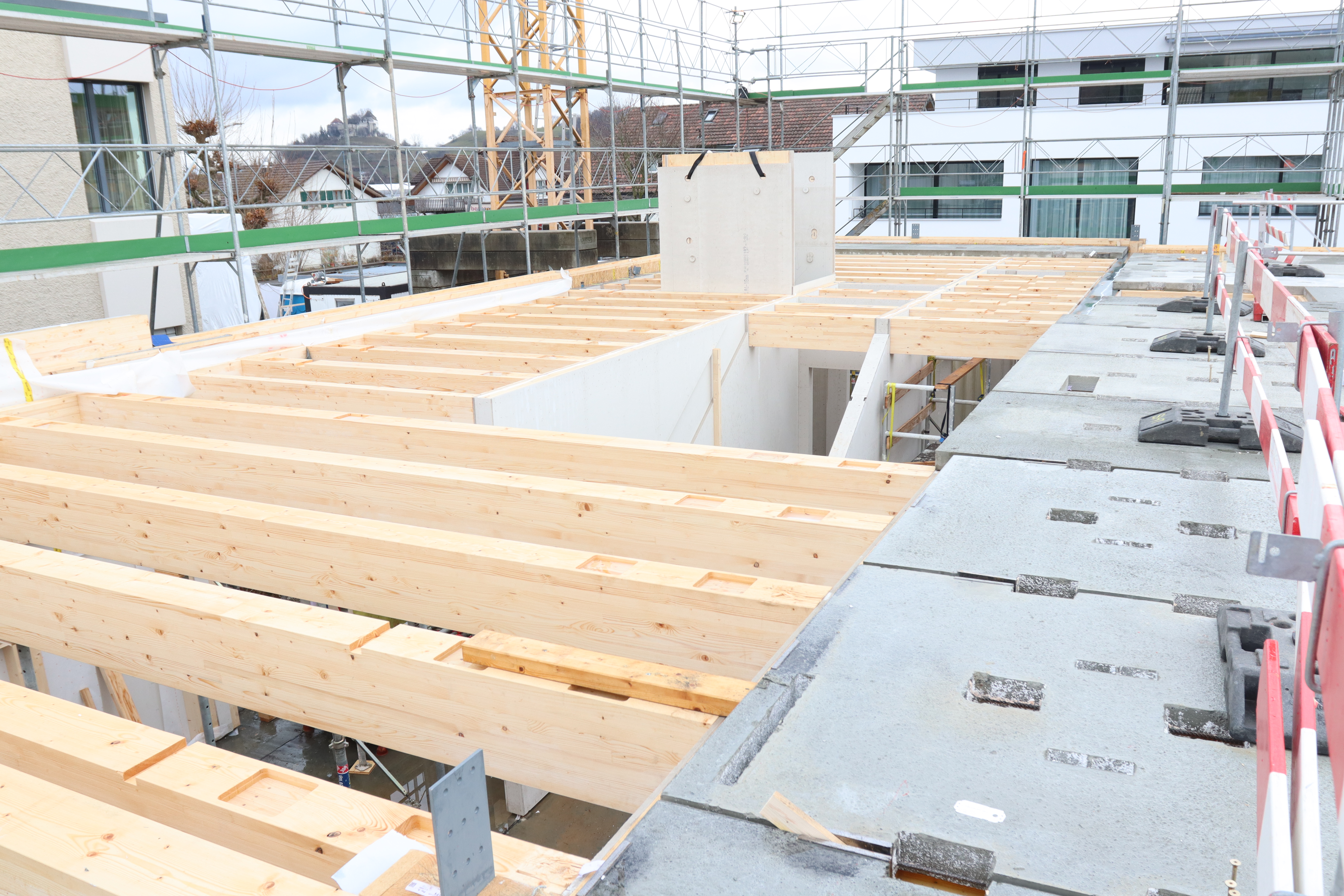 Die Decken des neuen Kindergartens wurden mit dem System Wilma gebaut. Den Wettbewerb für die Ausschreibung haben die BEM Architekten aus Baden sowie die Schäfer Generalunternehmung aus Dottikon gewonnen. Die Holzbauarbeiten wurden durch die Schäfer Holzbautechnikt AG ausgeführt.